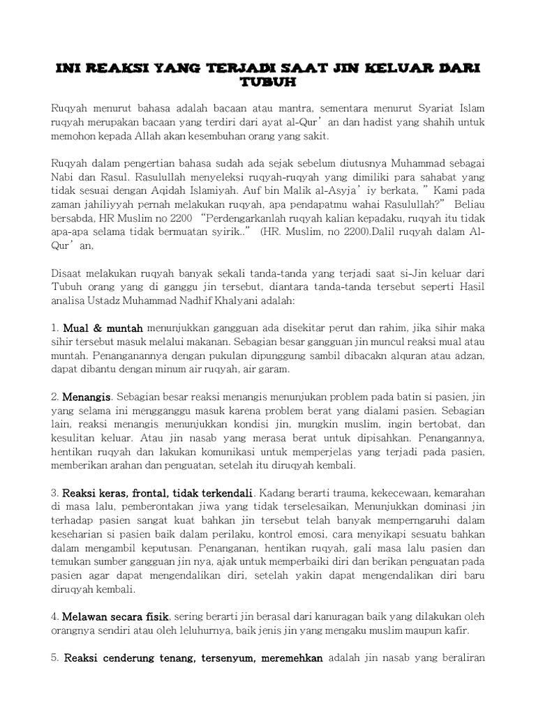 Ruqyah Jin - Reaksi Yang Terjadi Saat Jin Keluar Dari Tubuh