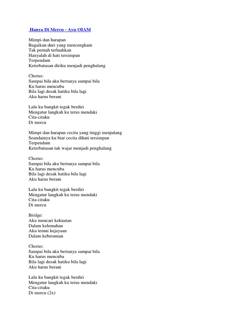 Lirik Lagu Hanya Di Mercu PDF